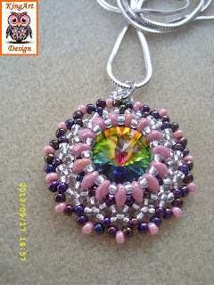 A narancssárga nagy bogyó után most egy kicsikét is fűztem, ezüst színben. Kedvencemet, a lilát is elkészítettem, "normál" méretben. Tetszik ez az orgona-lila! :-)