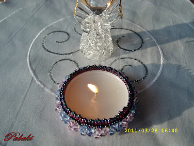 Megint Csipkés karkötő, alkalmi hatása lett a fekete-ezüst delicától. Abba a fekete-lila gyöngyös szettbe került, amihez régebben a kereszt medált is készítettem.