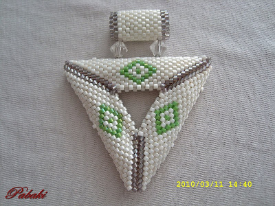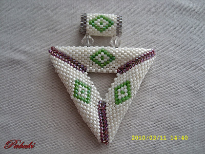3D háromszög medál, nagy méretű, hosszú láncra való. Ezt is kétoldalasra fűztem.
