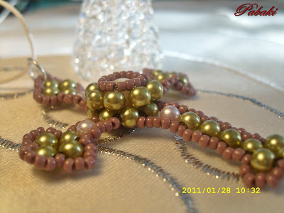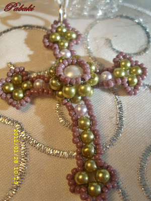 Kereszt medál pasztell zöldben, kicsi teklákból, képről fűztem - Évi gyöngyei.