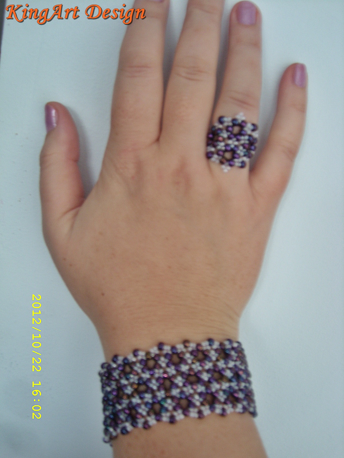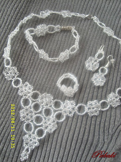 Kisvirágos karkötőt már készítettem egyszer, akkor megfogadtam, hogy lesz még folytatása, olyan aranyos ez a kis minta. Most szettet fűztem, így teljes a "kép".