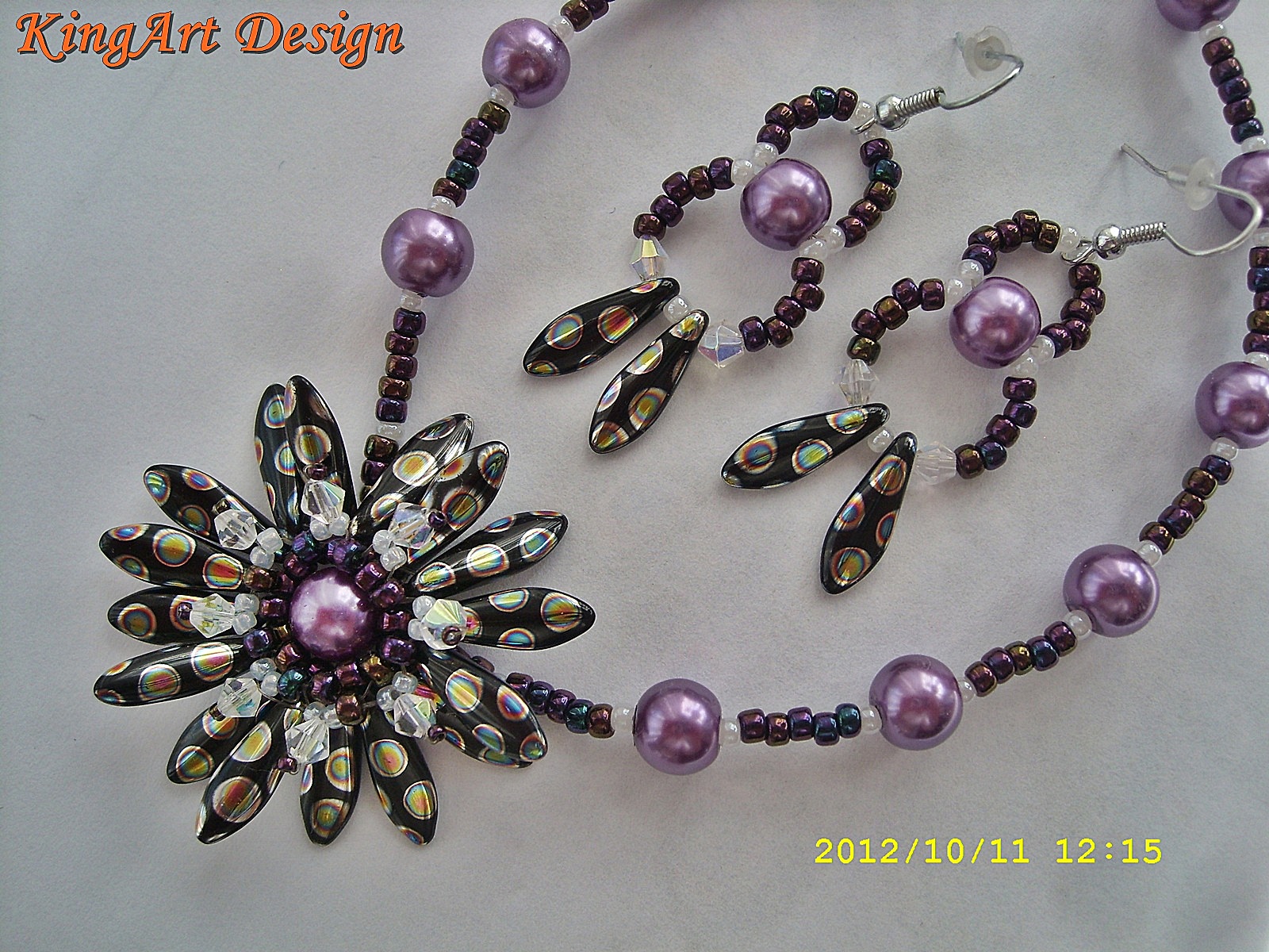 Végre beszereztem néhány szuper mintás dárda-gyöngyöt, és megfűztem magamnak a szépséges Margherita medált! Készítettem hozzá láncot és fülbevalót is, így "szettesedett". :-)