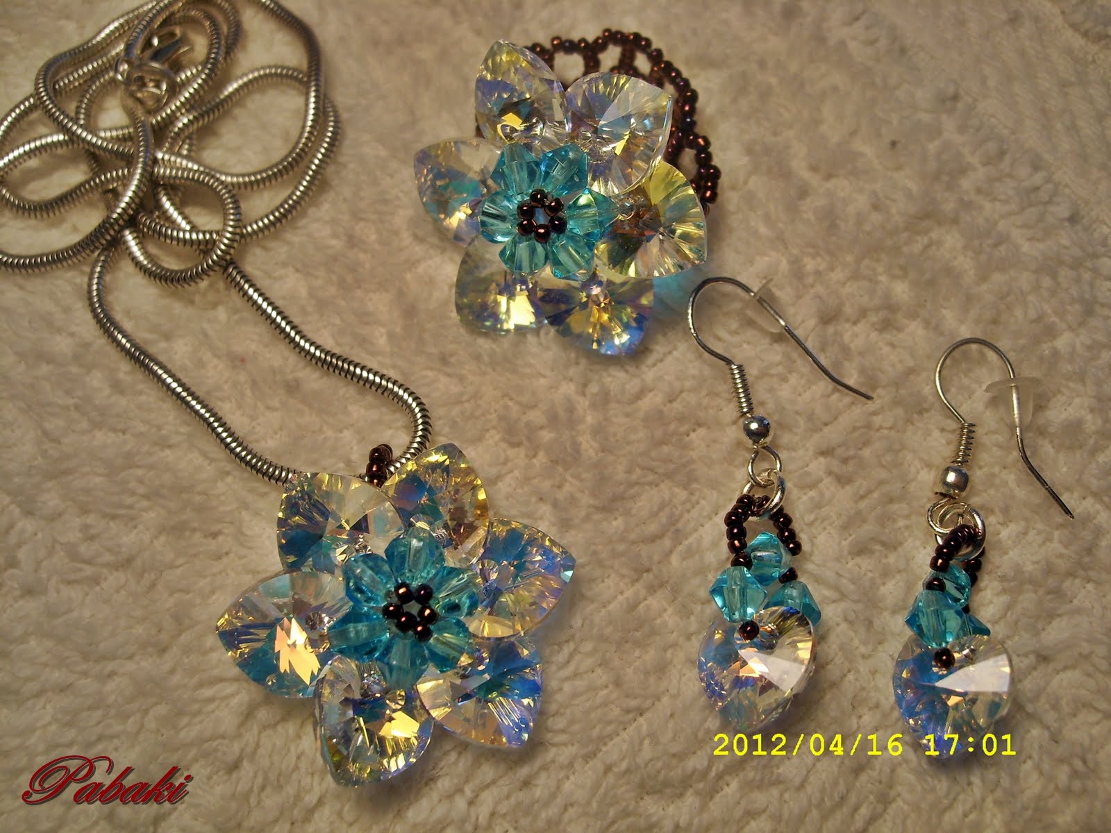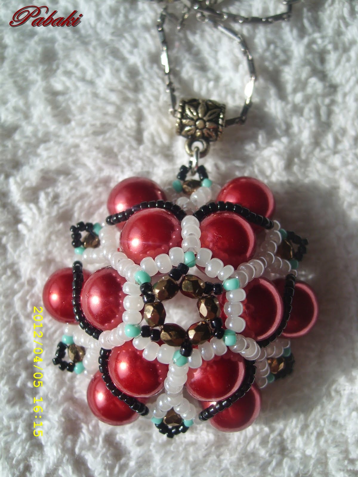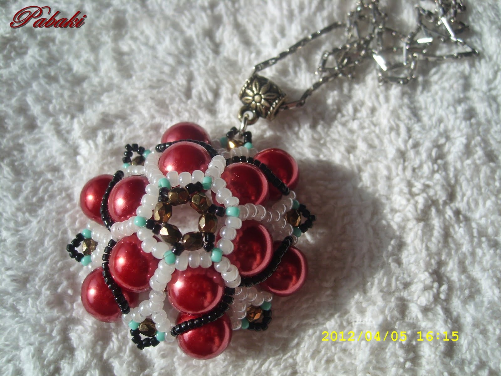 Még régebben találtam a Neten egy cuki kis mintát, szerintem éppen illik a fekete-türkiz karkötőmhöz, ami Panita mintája alapján készült. (Kisvirágos)