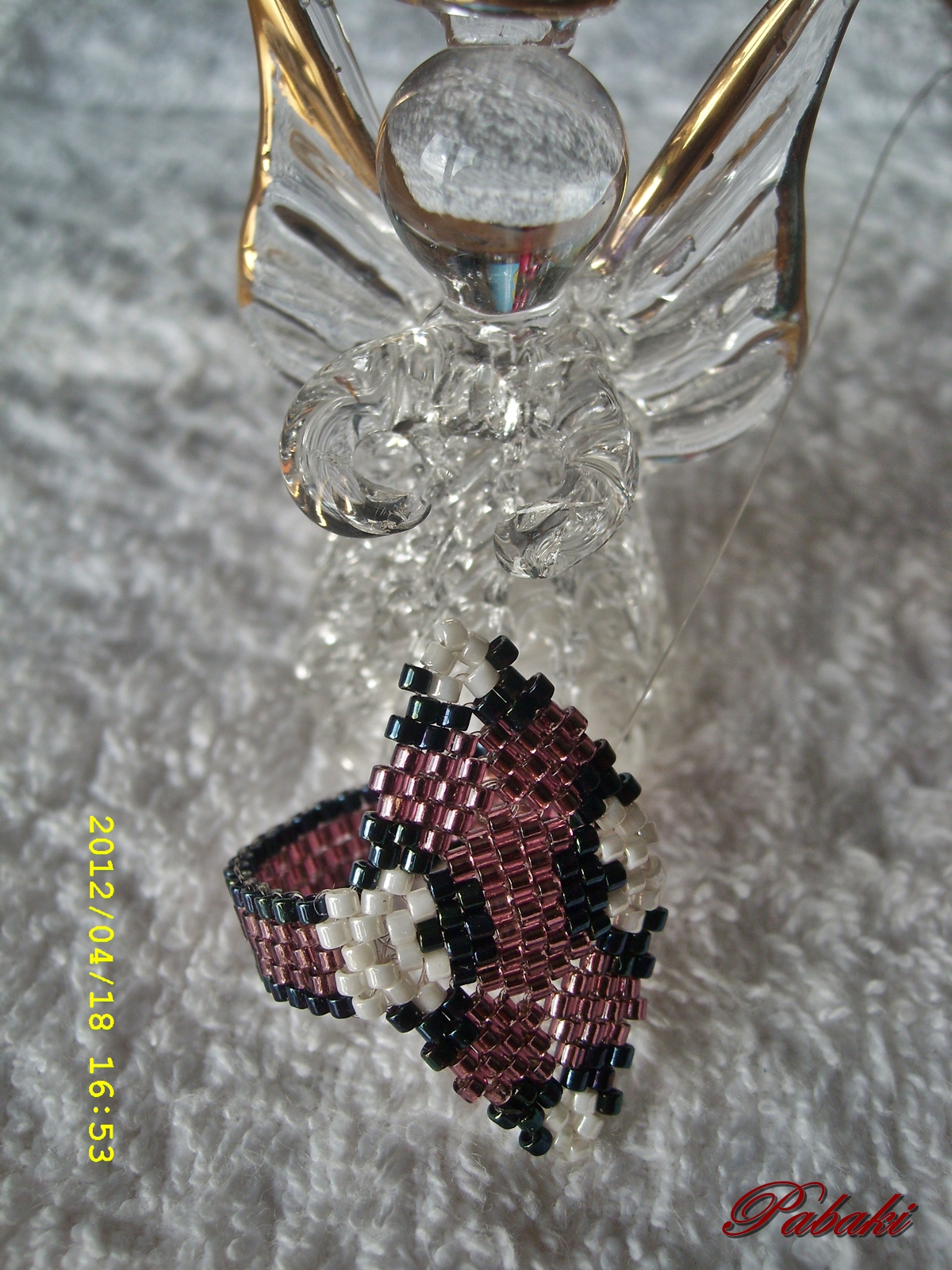 Ismét fűztem háromszöges gyűrűt, jóval kisebbet, mint az előző. Ezt most ajándékba...