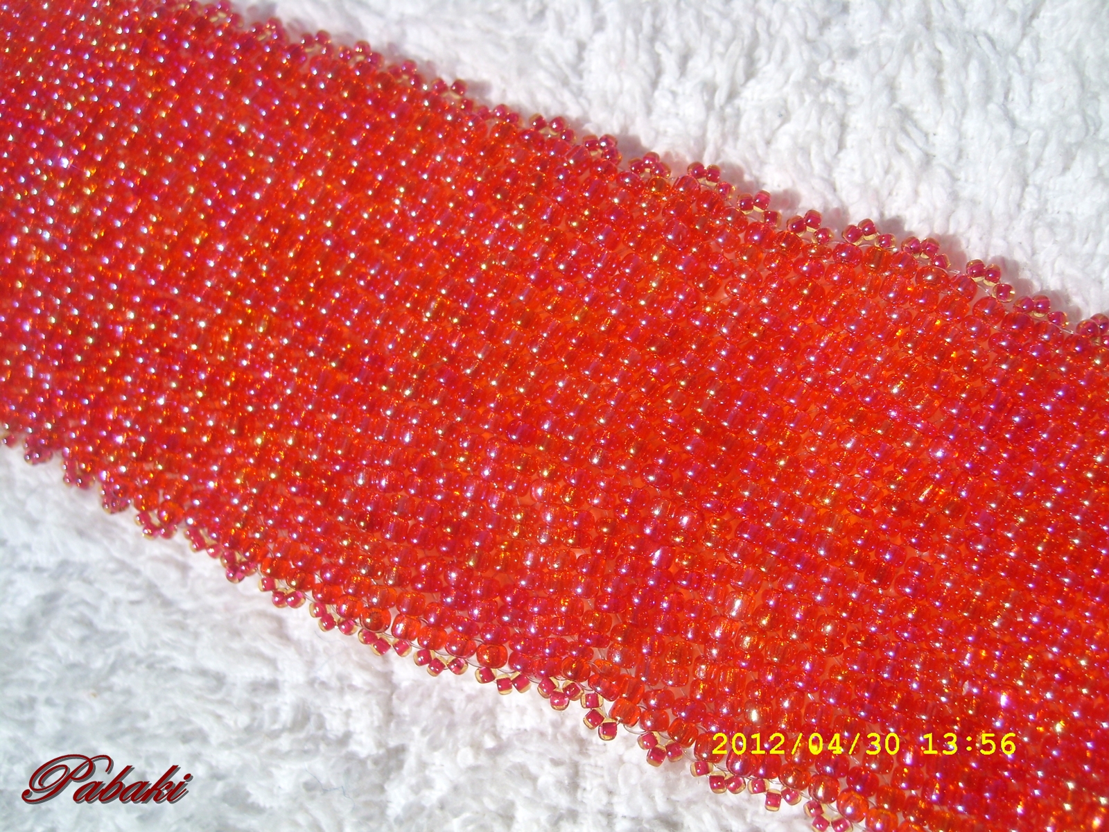 "Anya, ez a gyöngy olyan színű, mint a láva!" - mondta Marci fiam találóan, amikor fűztem ezt a kétszemes peyote karkötőt. Persze a fotózás nem egyszerű egy ilyen érdekes színnél, a napfény túl sok volt...